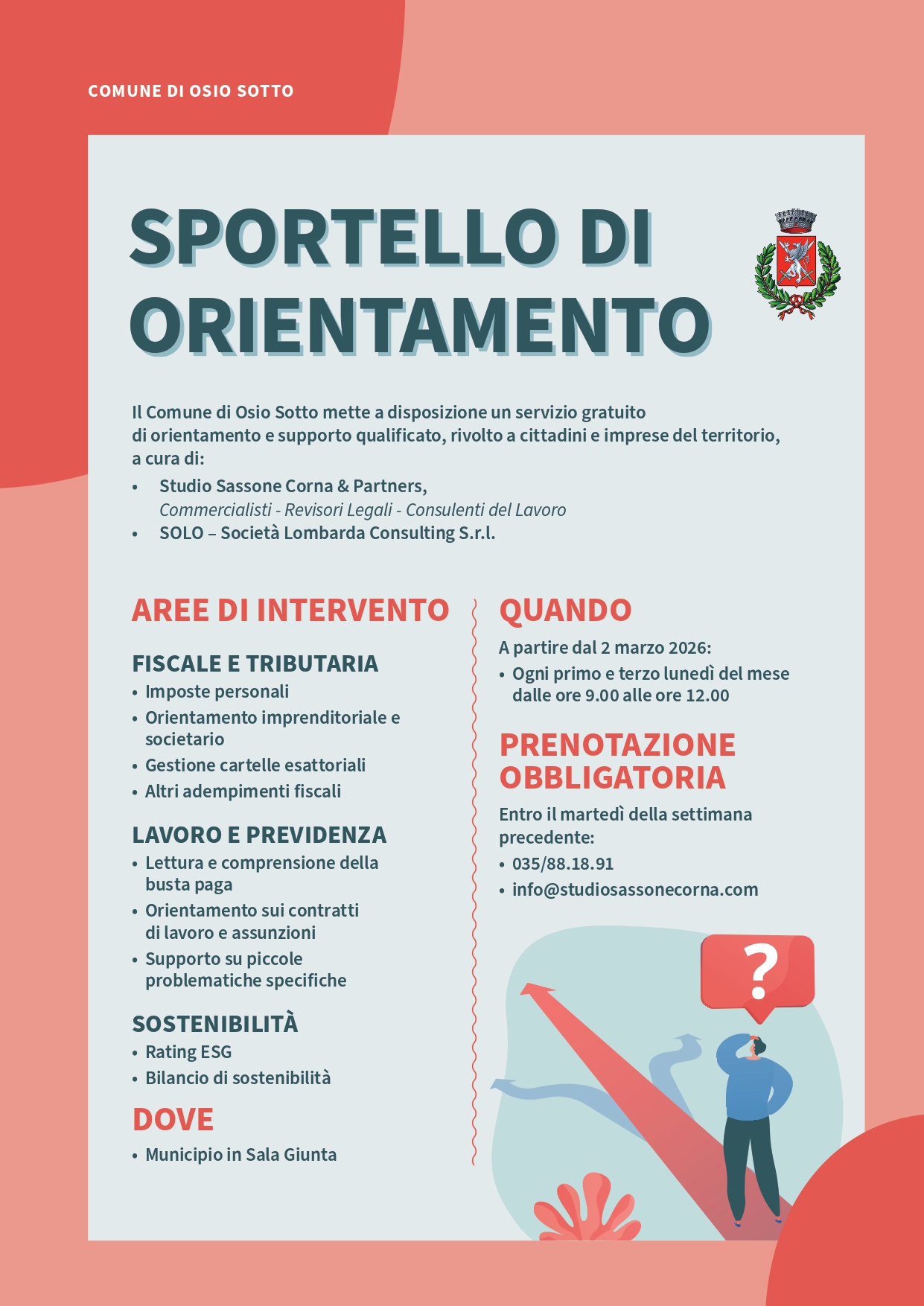 Parte un nuovo servizio per la cittadinanza, uno sportello gratuito di orientamento e supporto qualificato.